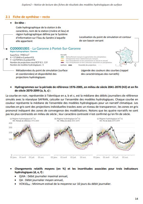 Découvrez les fiches diagnostics établies par station hydrologique. Vous y retrouverez les 611 stations de référence pour l'hydrologie de surface qui ont été sélectionnés par le projet EXPLORE2.