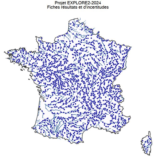 Nouveau : Les fiches de résultats et d'incertitudes éditées pour les stations de simulation des débits, qui ont été modélisées par au moins 4 modèles hydro de surface - soit 2368 points.