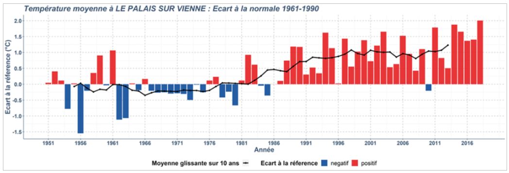 Les résultats mis en évidence dans le cadre de cette première phase montrent une augmentation de la température moyenne de l’air à partir des années 90. Ainsi, une augmentation de la température de +1.86°C depuis 1951 est observée à la station météorologique du Palais du Vienne (87).