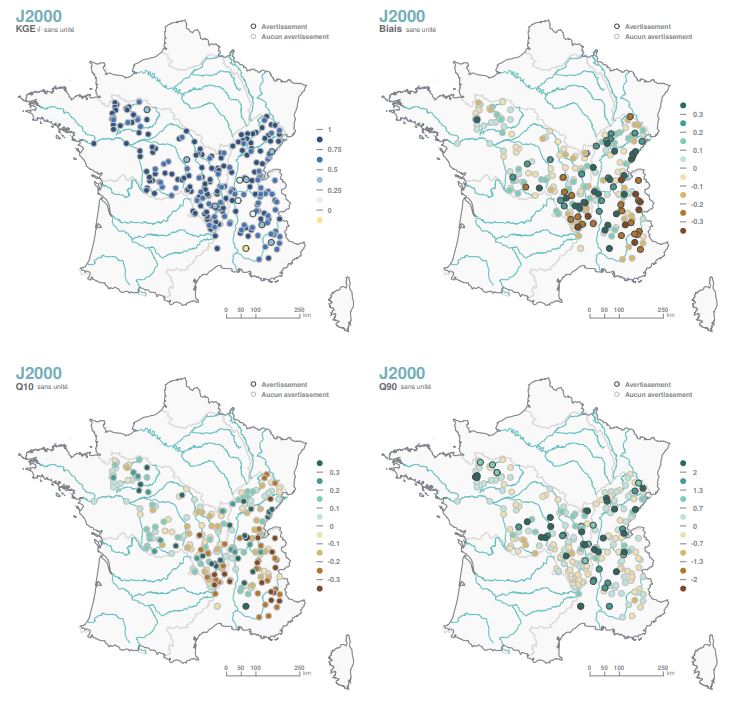 Figure 4 : Performance constatée sur les débits simulés par J2000.