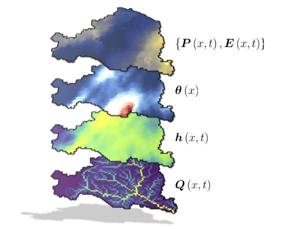 SMASH est une plate-forme de calcul, développée à INRAE, et dédiée à la modélisation hydrologique continue et spatialement distribuée ainsi qu’à l’assimilation de données (JAY-ALLEMAND et al., 2020). Cette plate-forme est conçue pour simuler des hydrogrammes de débit sur l’ensemble des mailles constituant le domaine de calcul en tirant parti des forçages météorologiques spatialement distribués et des observations hydrométriques. Le modèle est basé sur une représentation conceptuelle des processus hydrologiques dominants sur la base des modèles GR (PERRIN et al., 2003) tout en visant à maintenir une relative parcimonie des paramètres. La modélisation peut être mise en oeuvre pour différents pas de temps et différentes résolutions spatiales (Figure 1). La plate-forme SMASH est notamment utilisée en opérationnel dans le cadre du service d’avertissement Vigicrues Flash (PIOTTE et al., 2020). La plate-forme SMASH étant basée sur une représentation conceptuelle des processus hydrologiques, elle dispose de différents algorithmes et méthodes d’optimisation.