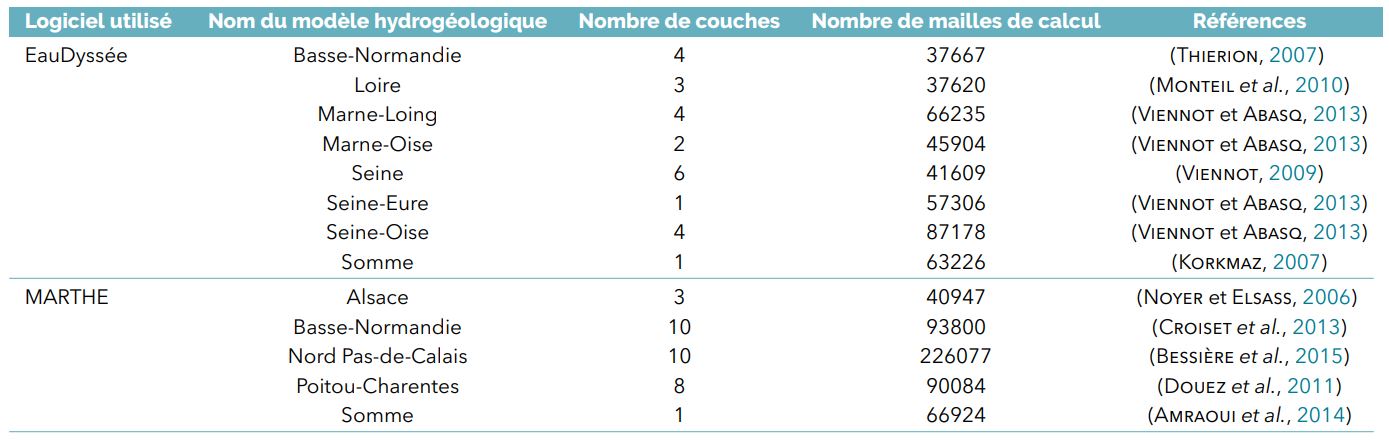 Tableau 1 : Brève description des modèles d’aquifères régionaux disponibles dans AquiFR.